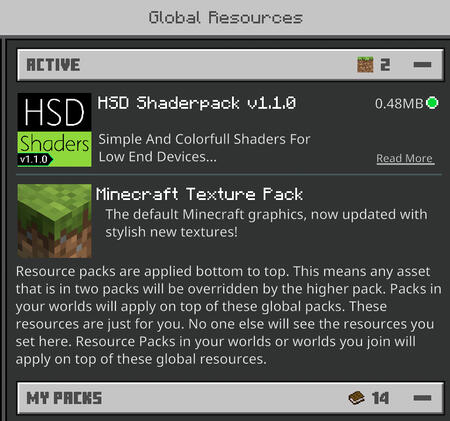 4.Open "My Pack And Active [ HSD-Shaders v1.1.0 ]